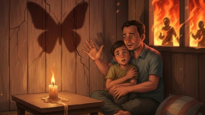 Aku terdiam. Bayangan itu terus mengepak, jatuh bangun mengikuti napas api lilin. Untuk sesaat, aku lupa gelap, lupa listrik yang tak kunjung menyala, lupa pertanyaan-pertanyaan yang tak pernah dijawab. Di dinding itu, ada kupu-kupu—cukup kupu-kupu—dan Ayah ada di sampingku.