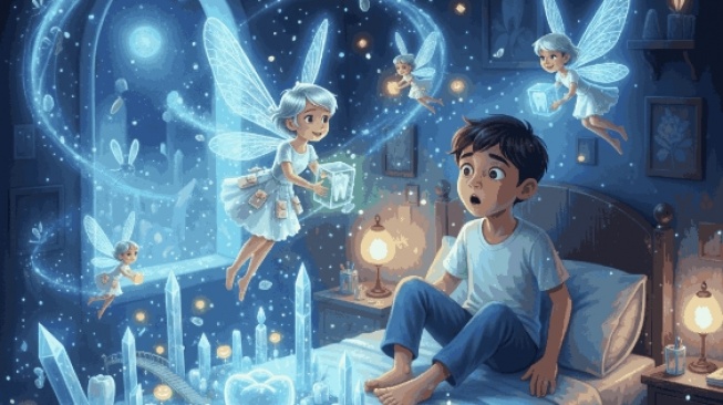 Dika duduk dan menatap Lumi dengan penuh rasa ingin tahu. “Peri gigi beneran ada?”