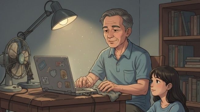 Laptop itu sudah ada bahkan sebelum aku mengerti bedanya RAM dan hard disk. Mereknya sudah terhapus dari punggung casing-nya, menyisakan bekas stiker yang mengerak. Engselnya longgar, membuat layarnya selalu condong ke belakang seolah-olah ia sudah terlalu lelah untuk tegak. Namun, bagi Bapak, laptop itu adalah "mesin ketik ajaib".
