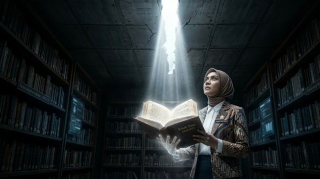 Hingga sampai pada sebuah surat berjudul cahaya. Jantungnya berdetak semakin kencang. Bulir-bulir peluh membasahi dahinya. Dengan tangan gemetar, ia melempar asisten AI—sebutir kelereng canggih di atas meja—seolah benda itu bisa menjadi mata.