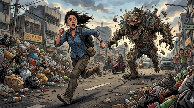 Alin berlari sekencang-kencangnya penuh ketakutan. Dan, aroma sampah yang menyengat terus mengejarnya dari segala arah.