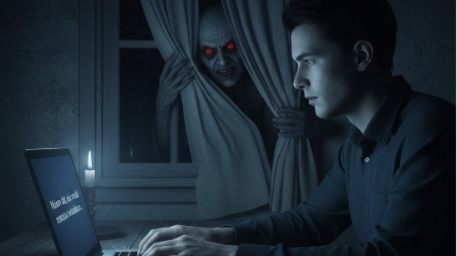 Tidak seperti biasanya. Seketika bulu kudukku berdiri. Jendela yang tirainya sedikit kusingkap seolah ada makhluk yang mengintip. Kala mataku kembali kufokuskan ke layar laptop, makhluk itu muncul lagi.