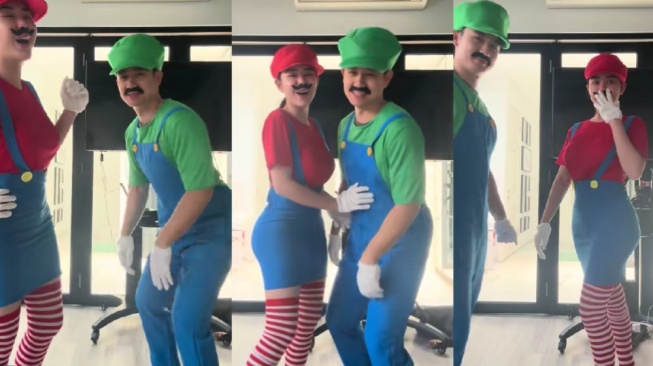 Keduanya tampak riang meloncat-loncat menirukan adegan khas dalam game Super Mario Bros. Tawa lepas pun terdengar saat mereka berdua saling menggoda dengan ekspresi gemas.