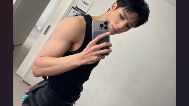 Dalam foto tersebut, Jeno terlihat mengenakan tank top hitam dan celana berbahan kulit, yang menonjolkan penampilan kasual namun tetap stylish. Ia juga memperlihatkan bagian tubuh atasnya yang atletis, yang langsung menarik perhatian para penggemar.