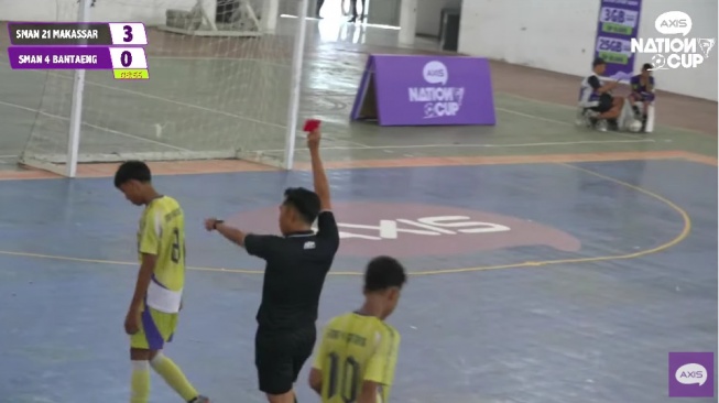 Wasit pun segera meniup peluit dan tanpa ragu mengeluarkan kartu merah, membuat pemain SMAN 4 Bantaeng harus keluar lapangan lebih awal.