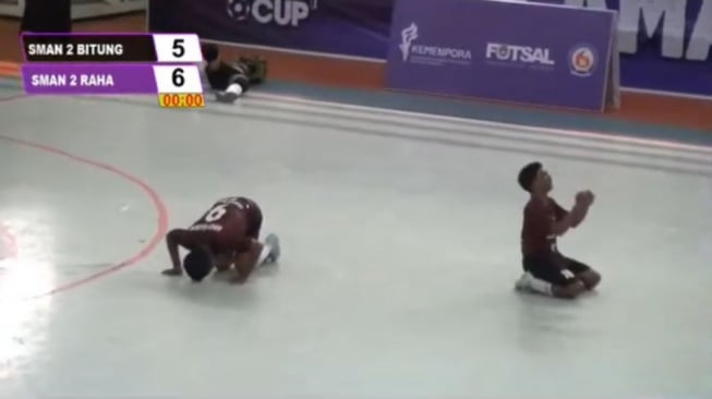 Tangis pecah dari pemain SMAN 2 Raha, beberapa diantaranya bersujud syukur atas kerja keras yang terbayarkan dengan kemenangan. Momen haru ini terlihat begitu emosional, sampai penonton seakan ikut merasakan perjuangan mereka hingga berhasil mencapai titik ini.