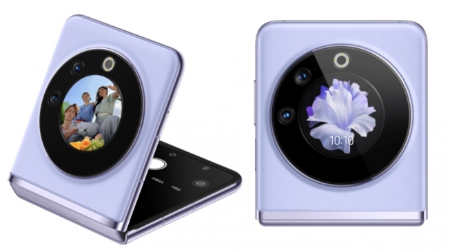 Dari segi desain, ponsel ini cukup unik dengan layar cover berbentuk lingkaran yang menyerupai jam tangan pintar. Tidak hanya estetis, layar tersebut juga fungsional untuk notifikasi, kontrol musik, hingga selfie menggunakan kamera utama.