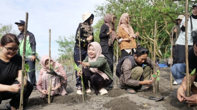 Ratusan peserta, mulai dari komunitas lokal, aktivis lingkungan, hingga relawan, turun langsung ke pesisir untuk menanam ratusan bibit mangrove.