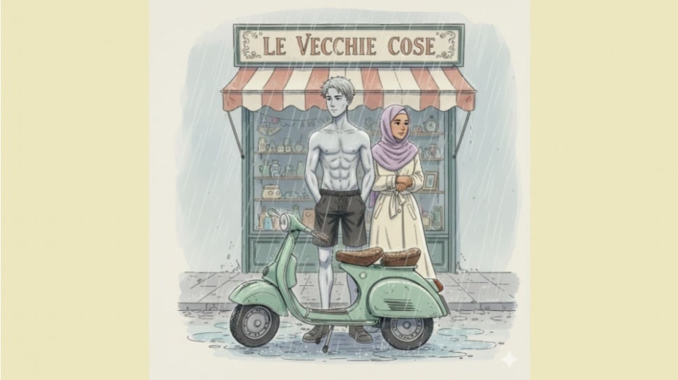 "Motor vespa ini dulu dipakai bapak antar jemput anak-anaknya sekolah. Saya waktu itu masih kelas satu SD," lanjut Kania. Menyentakkan pikiran Rama untuk kembali fokus pada perempuan berjilbab ungu muda di sebelahnya.
