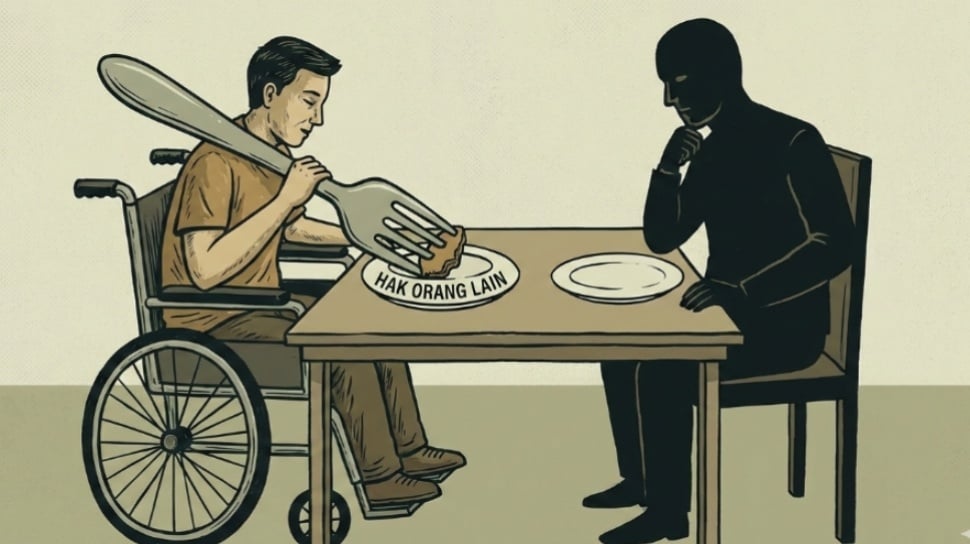 Padahal, dunia ini tidak runtuh hanya karena seseorang meminta kembalian. Yang runtuh adalah ketika ketidakadilan dibungkus alasan, lalu disuruh kita terima sambil tersenyum.