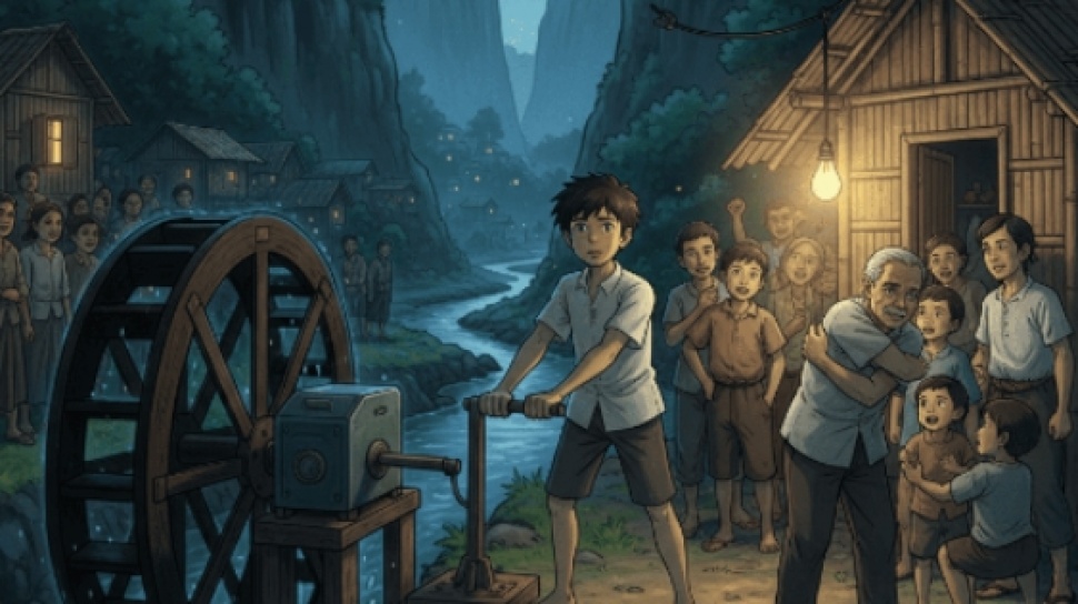 Bayu menatap ke arah sungai yang mengalir deras di dasar lembah, suaranya menderu sepanjang tahun. "Ayah, air itu... dia tidak pernah lelah mengalir. Selama ini kita hanya menggunakannya untuk mencuci baju dan mandi. Padahal, di dalam alirannya tersimpan kekuatan raksasa. Kekuatan yang bisa membuat malam kita tidak lagi hitam, Ayah."