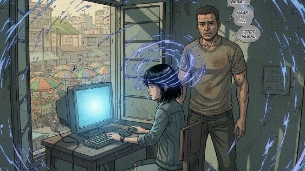 Dengan satu klik, dunia Lovi berputar. Tubuhnya tetap di kursi, tetapi kesadarannya menyelinap ke tubuh ayahnya. Sensasinya aneh: napas berat, otot pegal dari kerja seharian, dan pikiran yang berlapis-lapis seperti kabut tebal. Dia, atau ayahnya, bangun dari tempat tidur, melihat ke cermin. Wajah ayahnya menatap balik, tetapi mata itu milik Lovi.