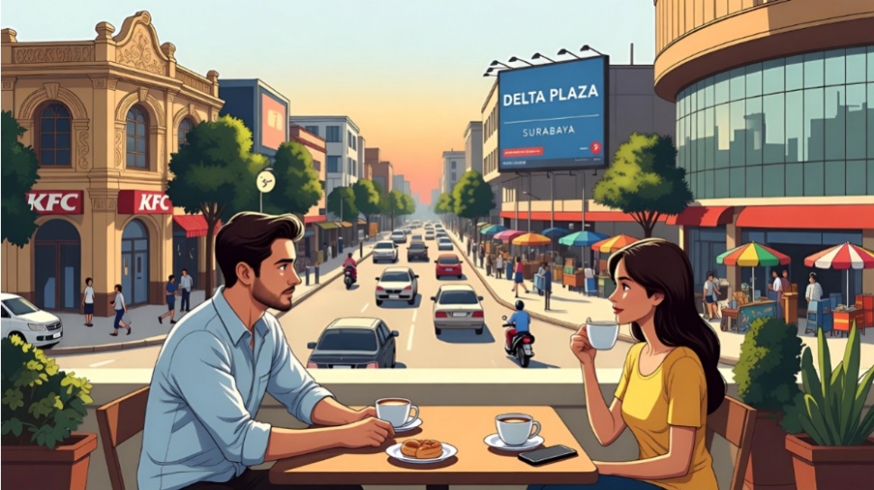 Mereka duduk di teras kafe di Mal Delta Plaza Surabaya, tempat hiruk-pikuk kendaraan dan pedagang kaki lima menyatu dengan aroma kopi tubruk.