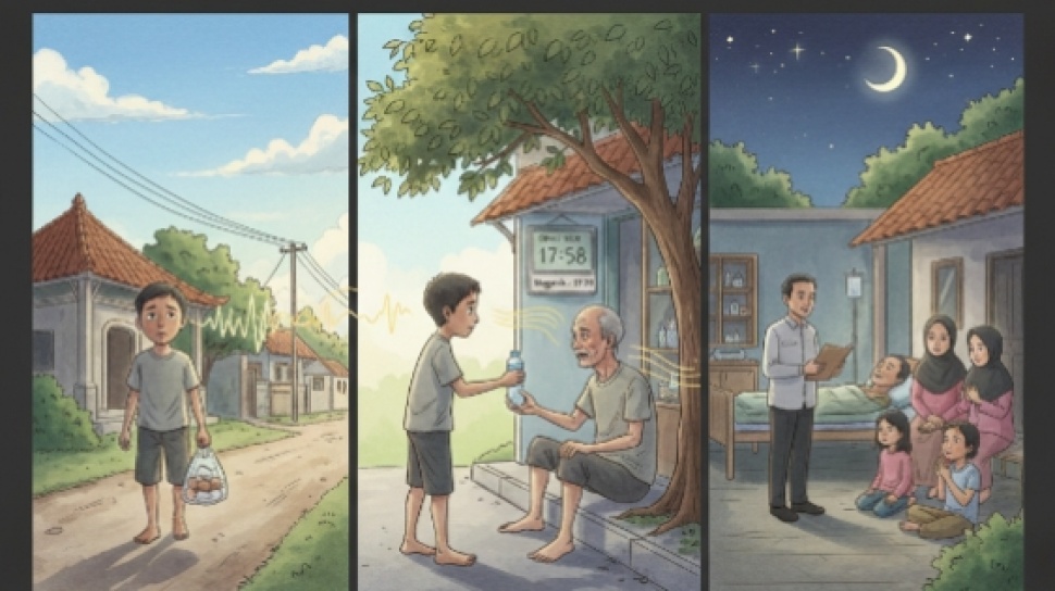 Ramadan mengajarkannya satu hal penting bahwa memberi, bahkan saat kita sendiri kekurangan, adalah bentuk iman yang paling sunyi dan paling jujur. Dan di antara jutaan doa yang terbang di bulan suci itu, ada satu doa dari orang asing yang menemukan jalannya tepat ke rumah kecil di ujung kampung.
