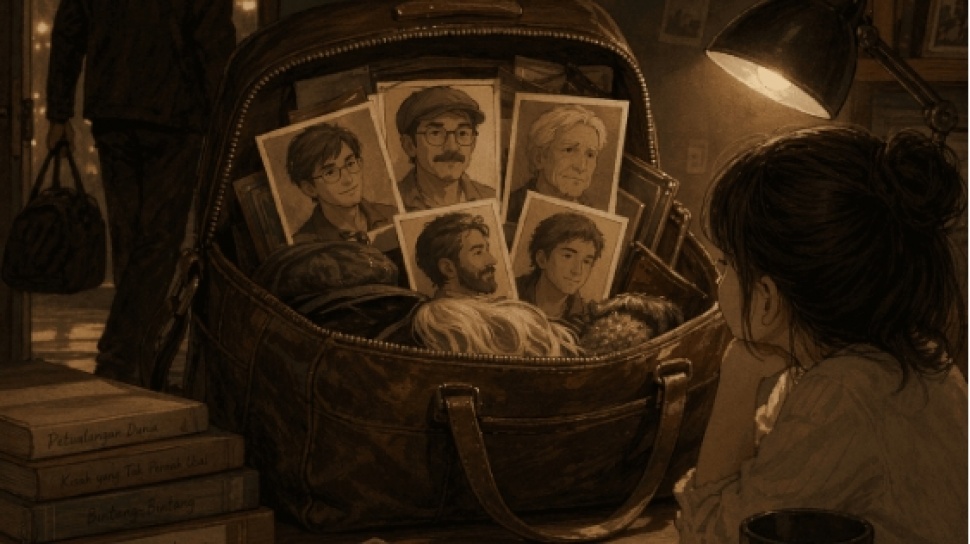 Dari dalam tas kulit yang sedikit usang itu, selalu muncul sesuatu yang berharga. Buku baru yang kuinginkan, sepatu baru yang teramat cantik. Kadang, berlembar-lembar dan segepok uang yang terlalu banyak untuk ukuran orang yang katanya hanya muncul beberapa detik di layar.