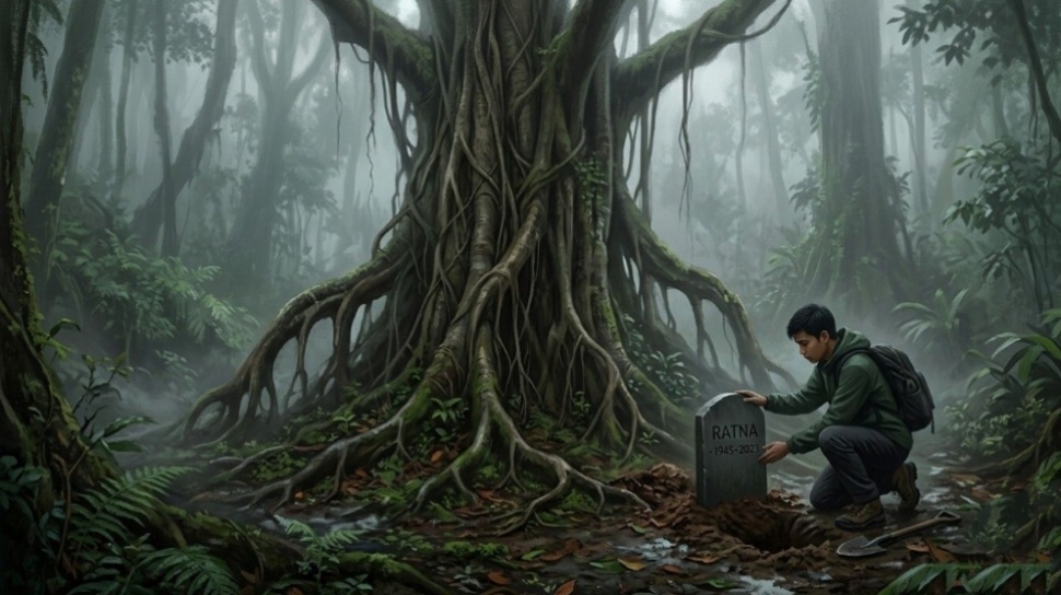 “Ukirlah: Laras, 1995-2025. ‘Dia yang tak pernah mati benar.’ Taruh di tepi hutan, di dekat pohon beringin tua. Mungkin dengan itu, aku bisa lepas.”