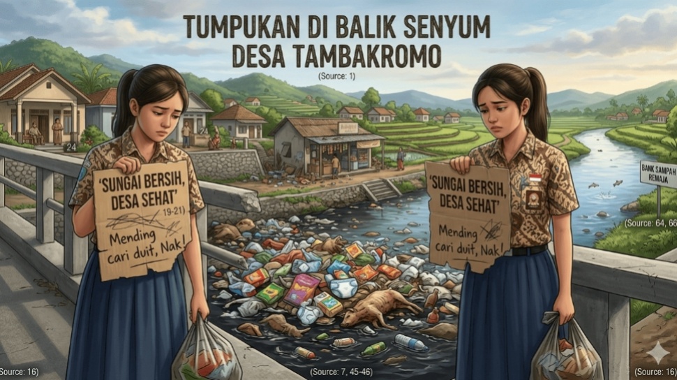 Arum menggigit bibir. Ia sadar; masalahnya bukan sekadar sampah, tapi budaya Desa Tambakromo yang sudah jauh berbeda.
