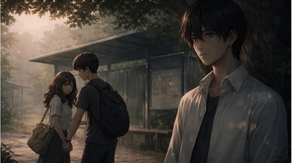 Di bawah pohon seberang halte, Haru berdiri. Bayangannya memanjang, menyentuh aspal yang retak. Dia mengamati sepasang anak muda itu tanpa ekspresi. Angin pagi berembus dan Haru melebur menjadi debu.