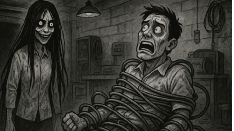 Tiba-tiba, kabel-kabel yang menggantung di plafon bergetar, lalu satu per satu jatuh, melilit tubuh Pak Harun. Semakin ia berusaha melepaskan diri, lilitan itu semakin mengikat, meninggalkan jejak luka bakar di kulitnya. Suara daging mendesis bercampur teriakan memenuhi bengkel.