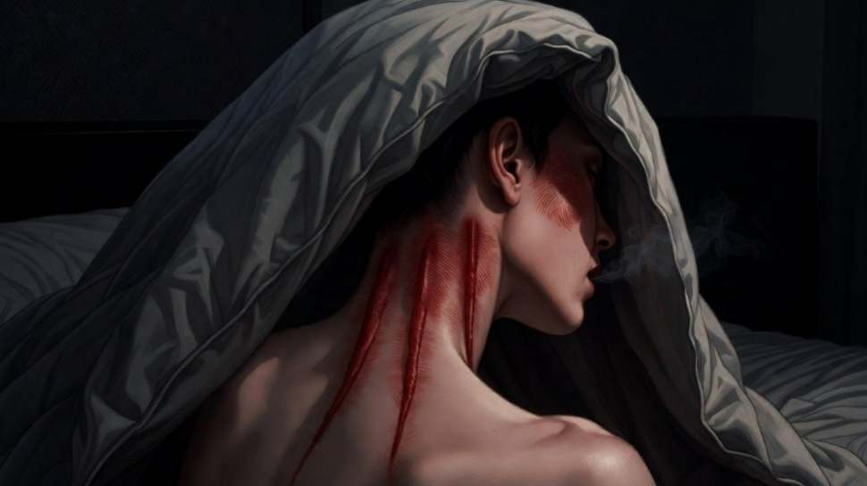 Di belakang leherku, ada bekas merah panjang. Seperti sidik jari yang ditekan kuat. Lima bekas. Masih hangat saat kusentuh. Jantungku berdegup kencang. Aku mematikan lampu. Gelap total.