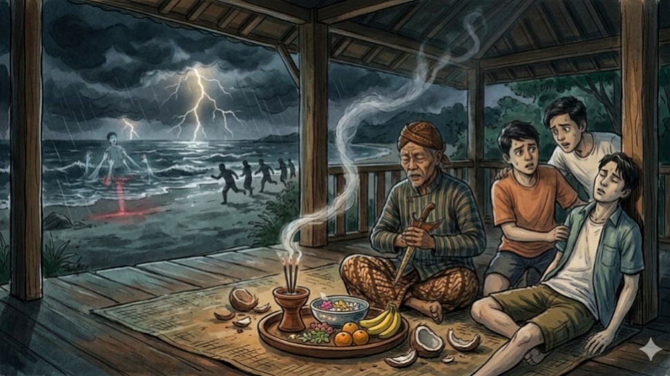 “Ritual. Prosesi adat adalah satu-satunya jalan untuk membawa korban kembali ke pantai.”