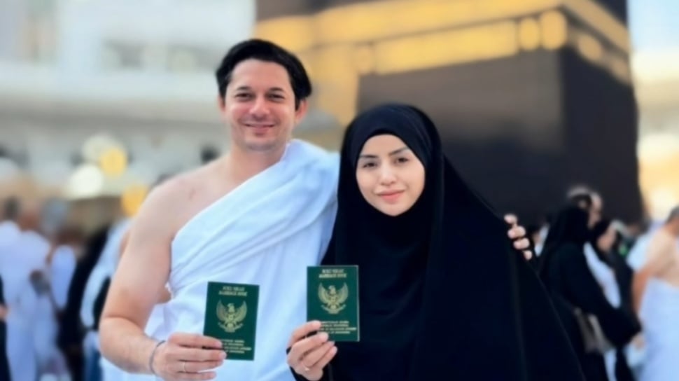 Melalui foto yang ia bagikan, Andrew tampil sederhana dengan pakaian ihram putih, sementara Violentina tampak menawan dalam balutan gamis dan hijab hitam.