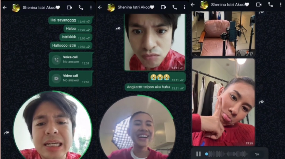 Dalam video tersebut, Angga tampak berusaha menghubungi Shenina dengan suara lembut yang terdengar manja.