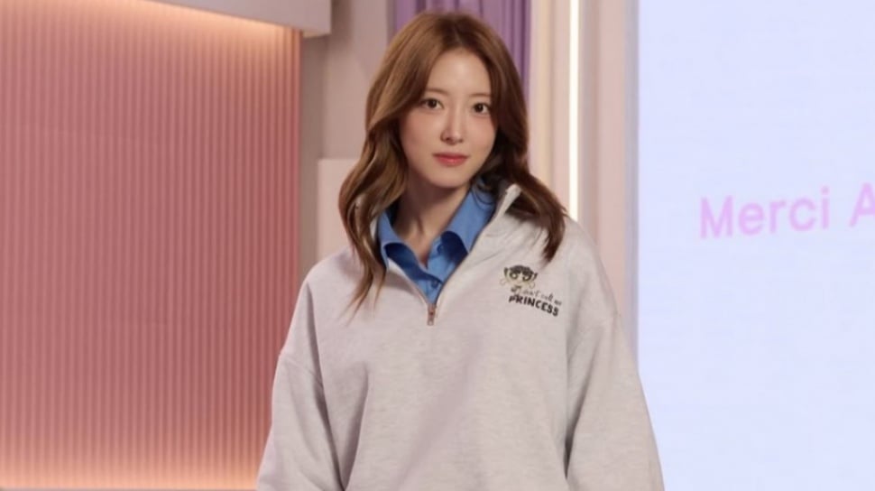 Se Young memadukannya dengan wide leg denim pants yang langsung memberi keseimbangan pada keseluruhan outfit. Siluet celana yang lebar membuat look terlihat modern, sementara denim tetap membawa kesan kasual yang timeless. Sandal slip on brown menambah kenyamanan sekaligus menjaga gaya tetap kasual dan mudah dipakai.