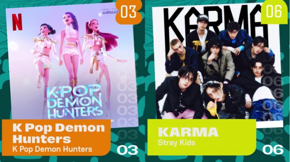 Soundtrack KPop Demon Hunters, yang memuat lagu viral seperti Golden dan Soda Pop, menempati peringkat ketiga dalam IFPI Global Album Chart 2025. Sementara itu, album penuh keempat Stray Kids bertajuk KARMA, dengan lagu utama Ceremony, berada di posisi keenam pada chart yang sama.