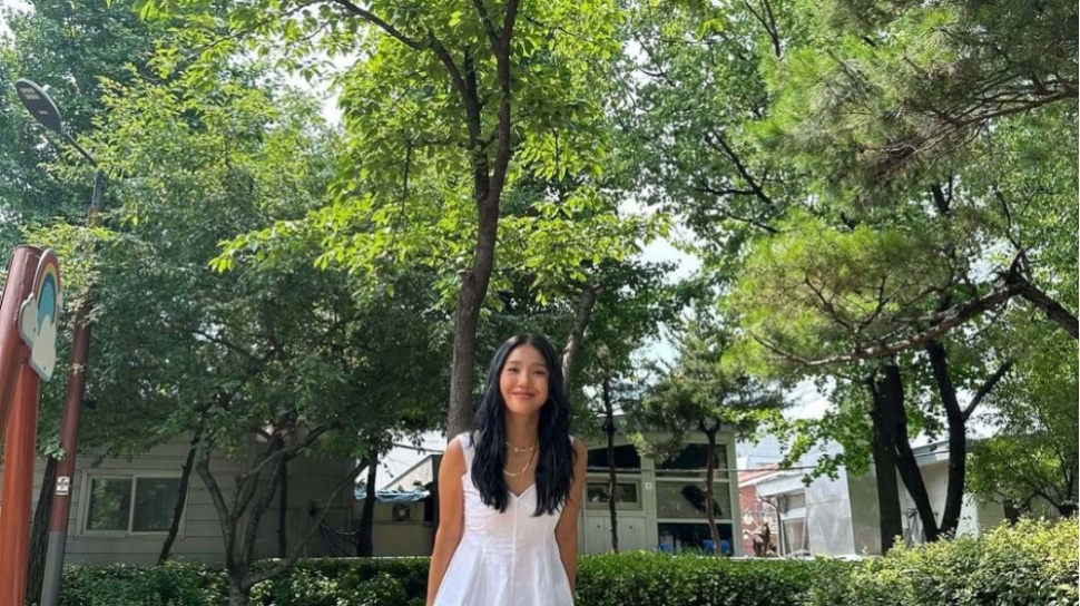 Di foto ini, Mimi terlihat mengenakan kemeja kotak-kotak berlengan panjang berwarna cream yang dipadukan dengan rok pendek denim berwarna light blue, dengan outfit yang seperti membuat kesan timeless, clean, dan cantik.