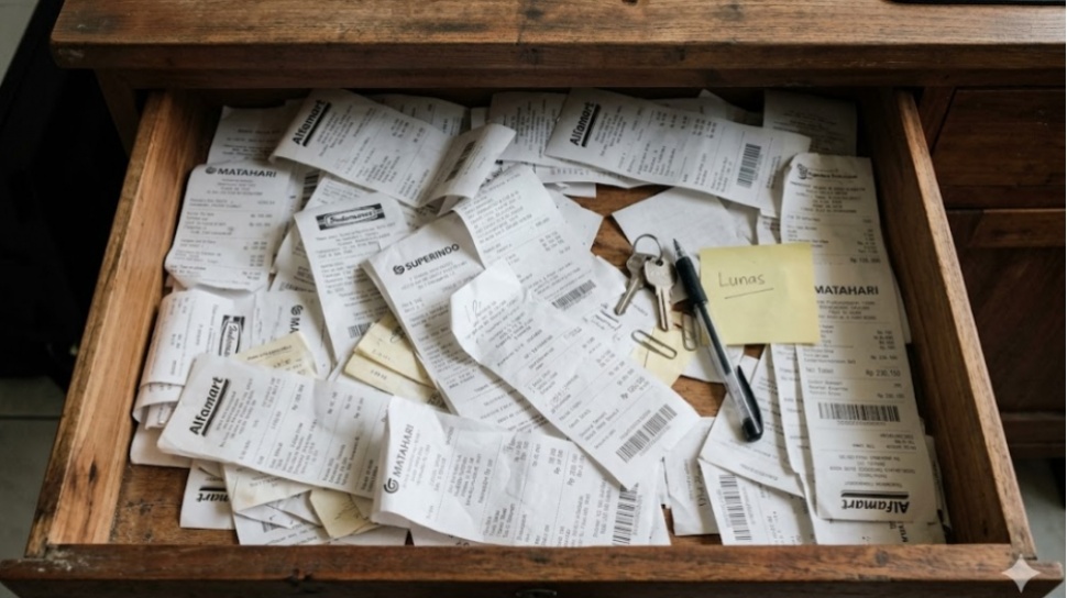 10. Menyimpan Struk Belanja dan Catatan Keuangan Usang