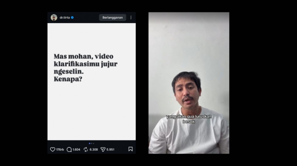 Dalam videonya, dr Tirta secara tegas mengkritik isi klarifikasi Mohan. “Mas Mohan, video klarifikasimu jelek dan justru memancing amarah. Tuduhan ke kamu gak 1-2, tapi ada banyak belasan coy. Dan itu semua harus kamu jelaskan, terserah caranya gimana,” kata dr Tirta melalui unggahan pada Senin (10/2/2026).