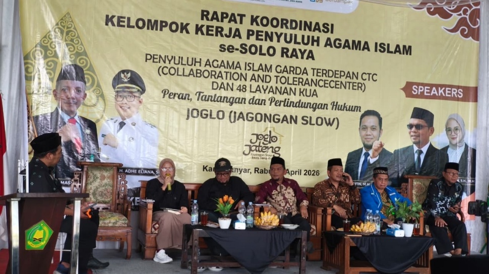 Semangat kolaborasi dan penguatan nilai toleransi mewarnai kegiatan Rapat Koordinasi Kelompok Kerja Penyuluh (Pokjaluh) Agama Islam se-Solo Raya yang diselenggarakan pada 22 April 2026 di Blowing Resto Ngargoyoso, Karanganyar.
