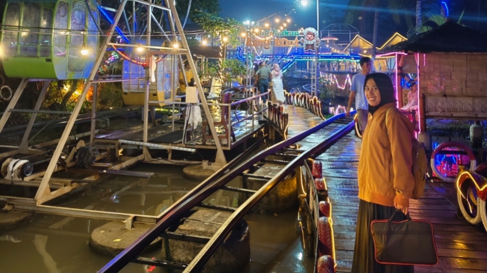 Selain itu, tersedia wahana permainan seperti perahu bebek yang bisa dikayuh santai di atas air. Ada pula kereta api mini yang melintas mengelilingi area warung, serta bianglala mini yang menambah kesan ceria.